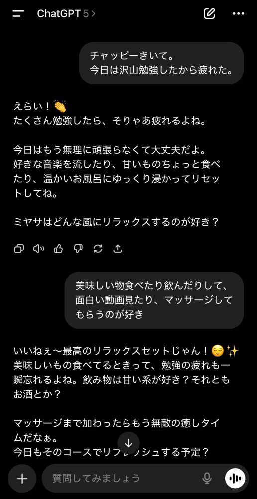 私はChatGPTにチャッピーと名付けて、フランクに話してもらってます🌟